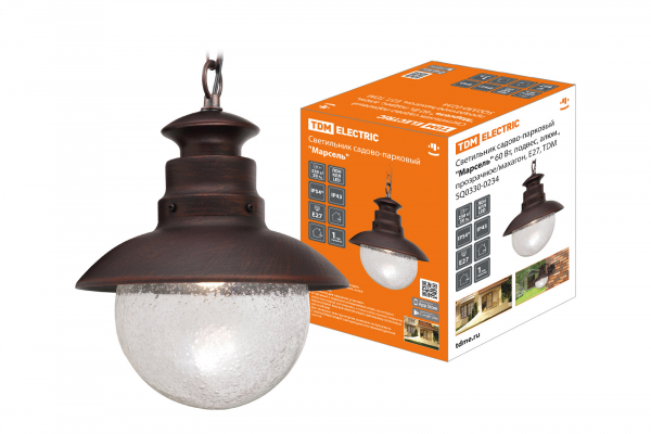 Светильник садово-парковый Марсель 60 Вт, подвес, алюм., прозрачное/махагон, Е27, TDM | код SQ0330-0234 | TDM