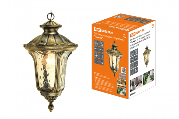 Светильник садово-парковый Париж 60 Вт, подвес, алюм., прозрачное/бронза, Е27, TDM | код SQ0330-0214 | TDM