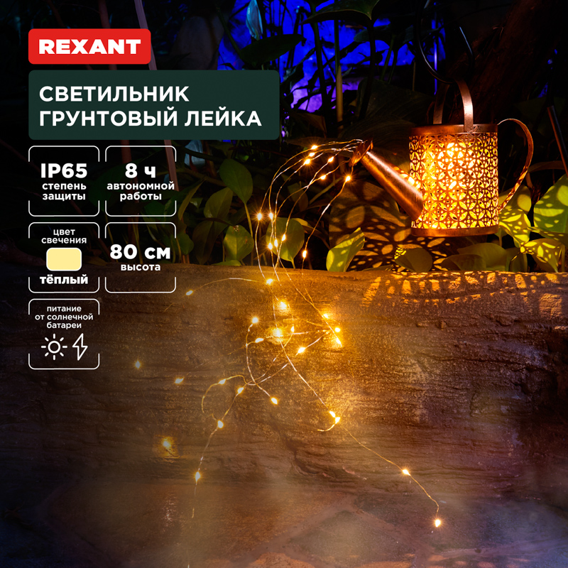 Светильник грунтовый Лейка, 3000К, встроенный аккумулятор, солнечная панель, коллекция Стамбул REXANT | код 602-2405 | REXANT