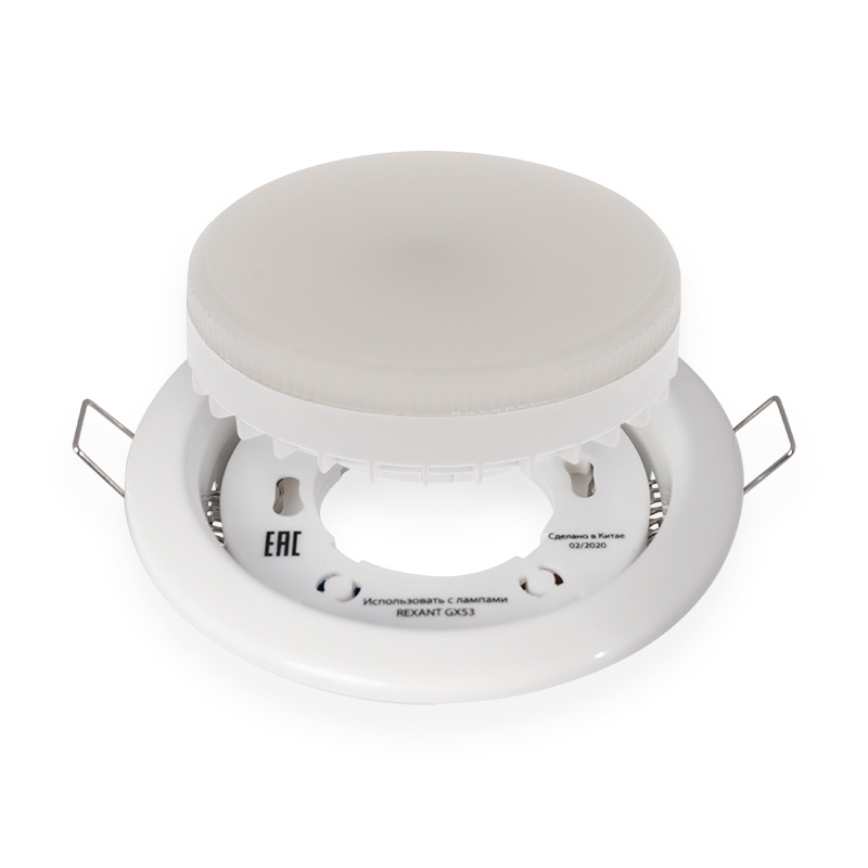 Комплект лампы и светильника GX53 «КОМФОРТНЫЙ ТЕПЛЫЙ БЕЛЫЙ» лампа 10,5 Вт теплого белого цвета свечения 2700 K и светильник под лампу GX53 белого цвета (604-063+608-001) REXANT | код 604-0630 | REXANT
