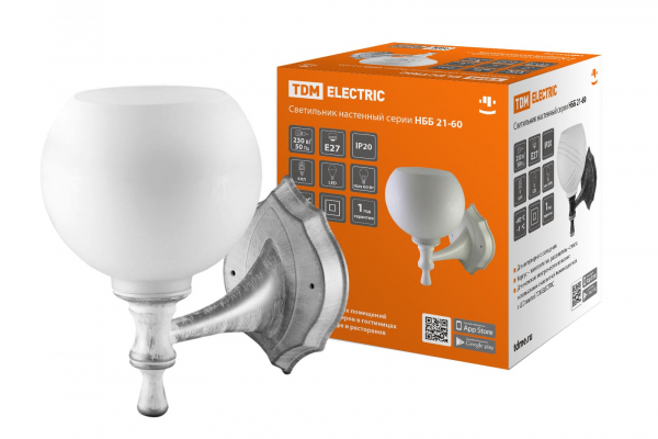 Светильник НББ 21-60-1323 УХЛ4 (белый под серебро, плафон полушар белый) TDM | код SQ0370-0202 | TDM