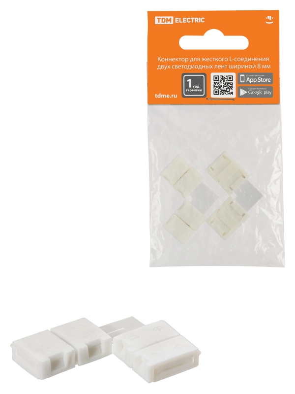 Коннектор для жесткого L-соединения двух светодиодных лент шириной 8 мм, (уп. 2 шт), TDM | код SQ0331-0411 | TDM