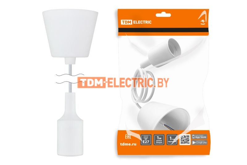 Патрон пластиковый Е27 с подвесом 1 м, белый TDM | код SQ0335-0061 | TDM