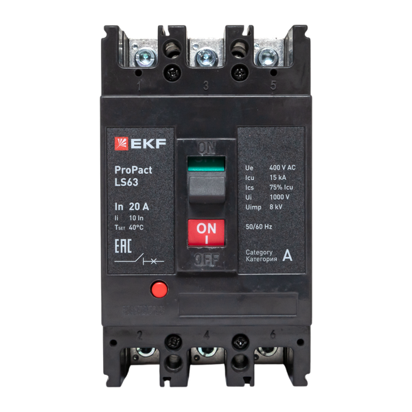 Автоматический выключатель LS63 15кА 3P 20А ProPact EKF | код mccb-63-15-3-20-ls | EKF