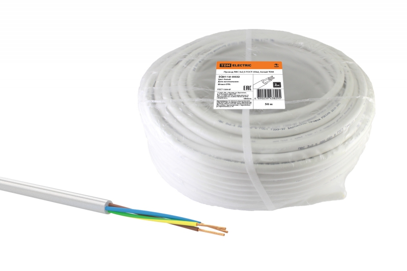 Провод ПВС 3х2.5 ГОСТ (бухта 50м) белый | код SQ0118-0032 | РЭМЗ ТМ