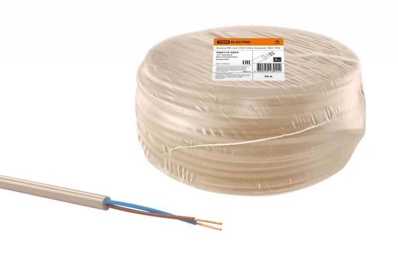 Провод ПВС 2х2.5 ГОСТ (бухта 50м) бежевый ЭКО | код SQ0119-0055 | РЭМЗ ТМ