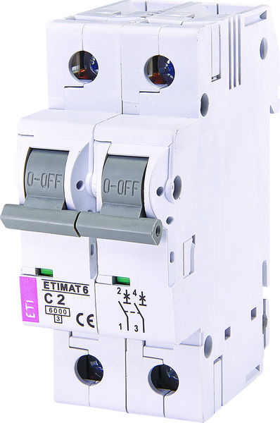 Автоматический выключатель ETIMAT 6 2p C 2A (6kA) | код 002143508 | ETI