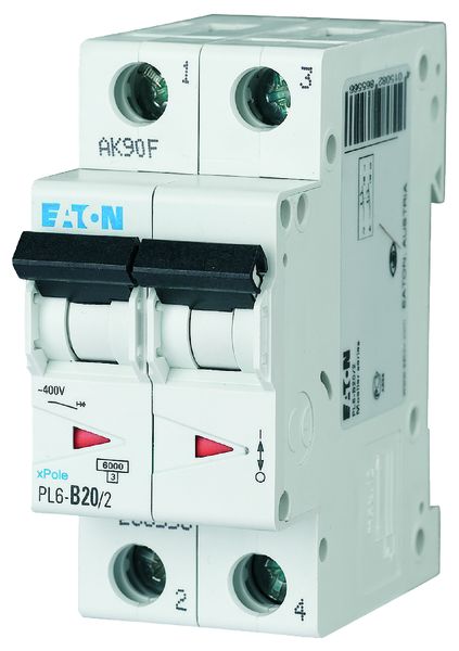 Автоматический выключатель 20А, кривая отключения С, 2 полюса, откл. способность 6 кА, PL6-C20/2 | код 286568 | EATON