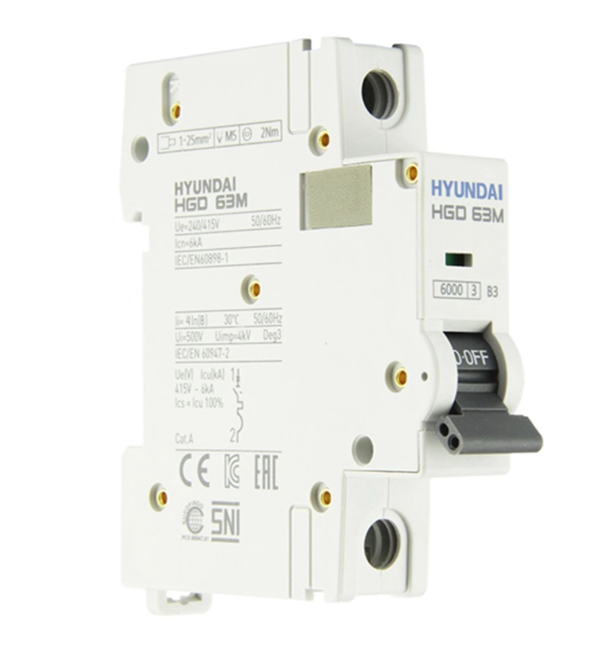 Автоматический выключатель HGD63-M 1PMBS0000C 00003 1 полюс, 3А, ток к.з. 6kA, хар-ка B (STANDARD) | код 13.04.001020 | HYUNDAI