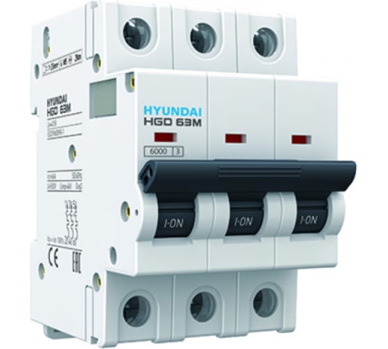 Автоматический выключатель HGD63P 3PMCS0000C 00010 3 полюса, 10А, ток к.з. 10kA, хар-ка C (STANDARD) | код 13.04.000930 | HYUNDAI