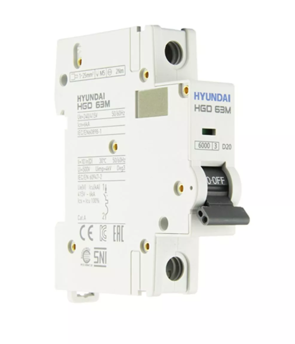 Автоматический выключатель HGD63-M 1PMDS0000C 00020 1 полюс, 20А, ток к.з. 6kA, хар-ка D (STANDARD) | код 13.04.000967 | HYUNDAI