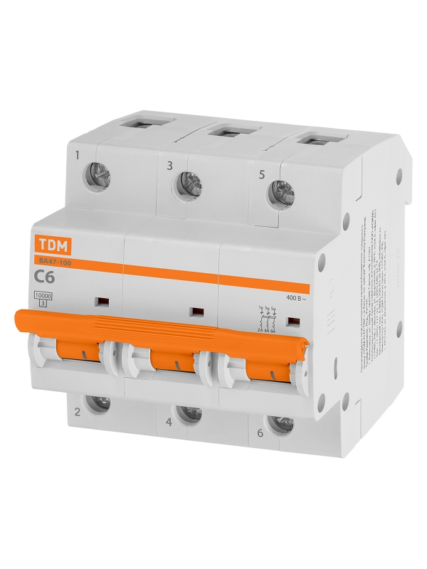 Авт. выкл. ВА47-100 3Р 6А 10кА х-ка С TDM | код SQ0207-0138 | TDM