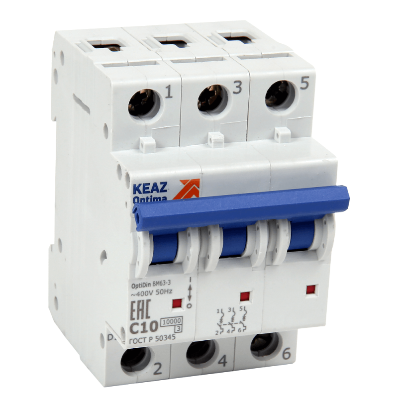 Автоматический выключатель модульный OptiDin BM63-3C5-10-УХЛ3 (ВМ63) (1шт.) КЭАЗ | код 249247 | КЭАЗ