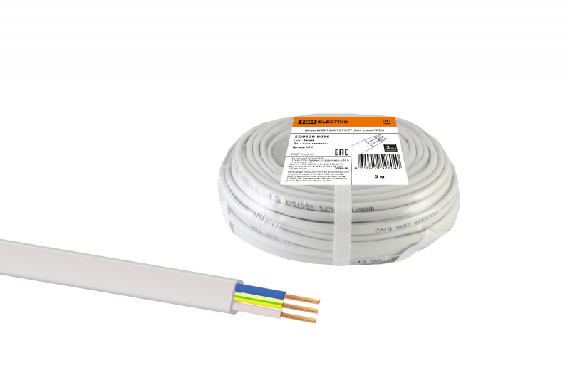 Шнур ШВВП 3х0.75 ГОСТ (5м) белый | код SQ0120-0016 | РЭМЗ ТМ