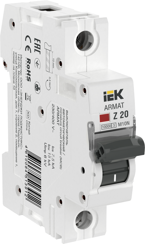 ARMAT Авт. выкл. M10N 1P Z 20А IEK | код AR-M10N-1-Z020 | IEK
