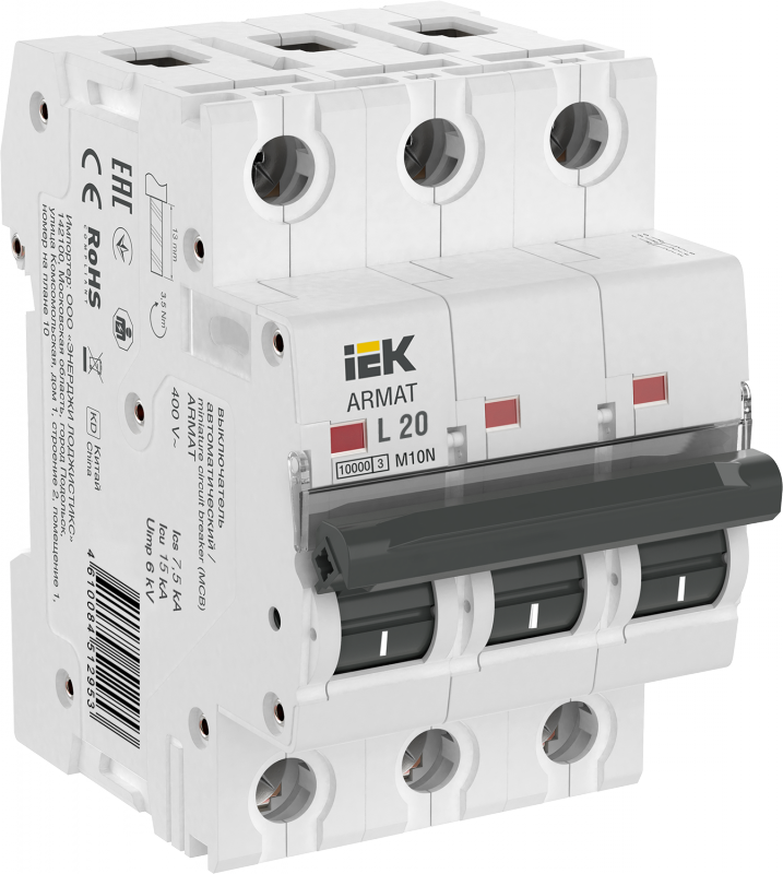 ARMAT Авт. выкл. M10N 3P L 20А IEK | код AR-M10N-3-L020 | IEK