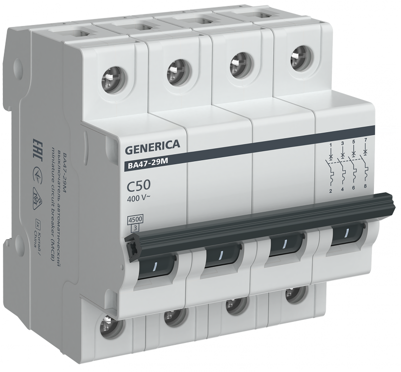 Авт. выкл. ВА47-29М 4P 50А 4,5кА C GENERICA | код MVA21-4-050-C-G | GENERICA by IEK