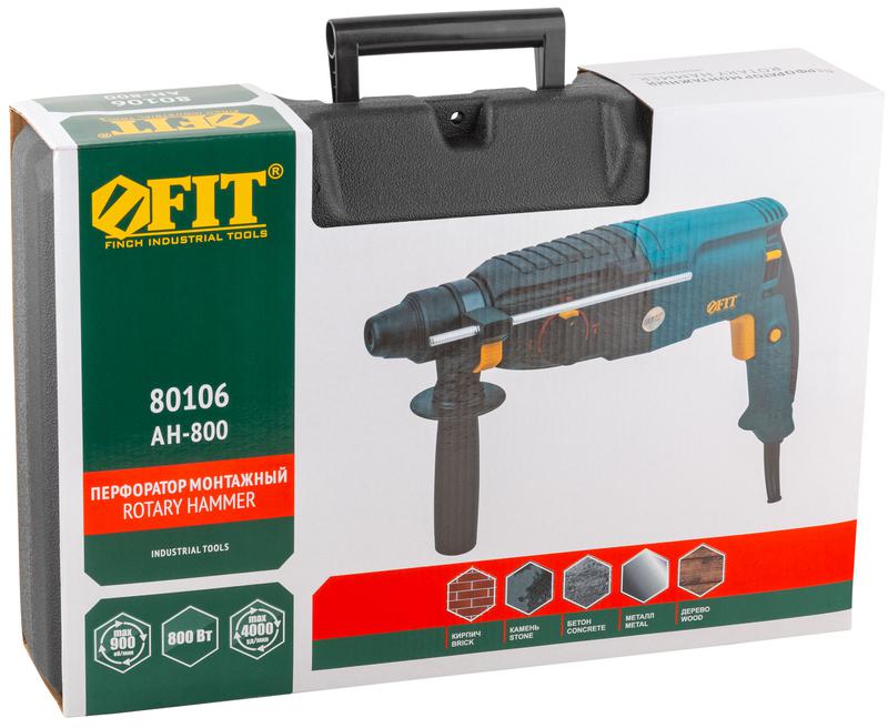 Перфоратор монтажный 800Вт; 0-900 об/мин; 0-4000 уд/мин; 3.0 Дж; 3 реж.; SDS-PLUS; реверс; 2.8 кг; кейс FIT 80106