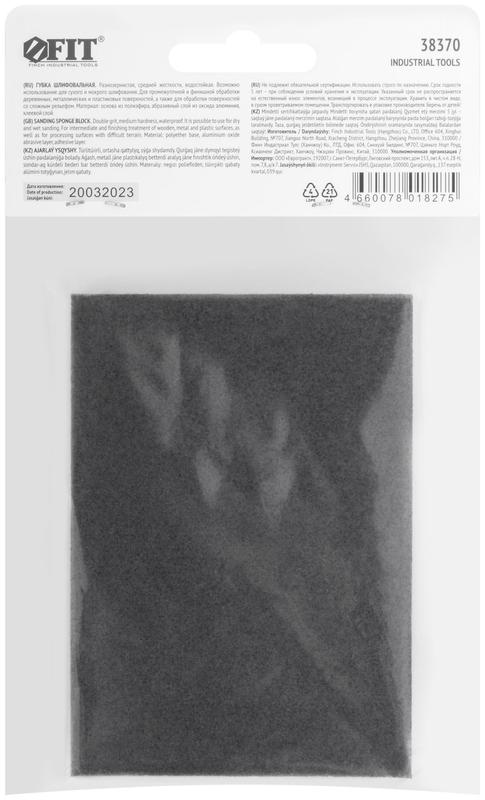 Губка шлифовальная 100х70х25мм Р 180/Р 360 средняя жесткость алюм./оксидная FIT 38370
