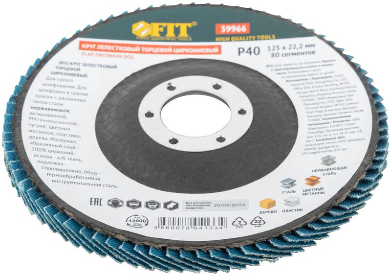 Круг лепестковый торцевой циркониевый 125мм Р 40 FIT 39966