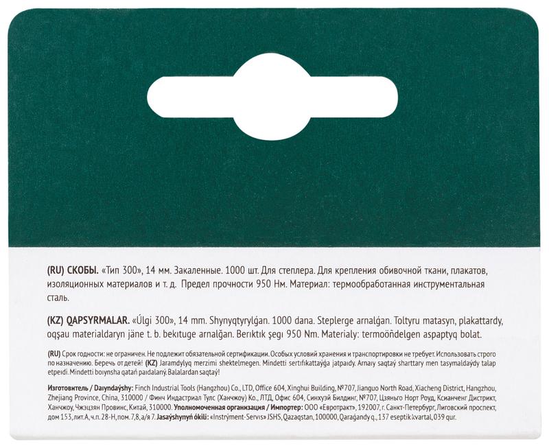 Скоба для степлера закаленные гвозди 14мм (уп.1000шт) FIT 31244