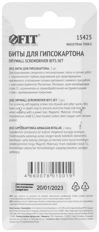 Насадки д/быстрого завинч. самор. по гипр. набор сталь S2 профи РН2х25мм (уп.2шт) FIT 15425