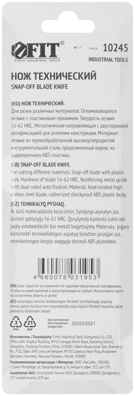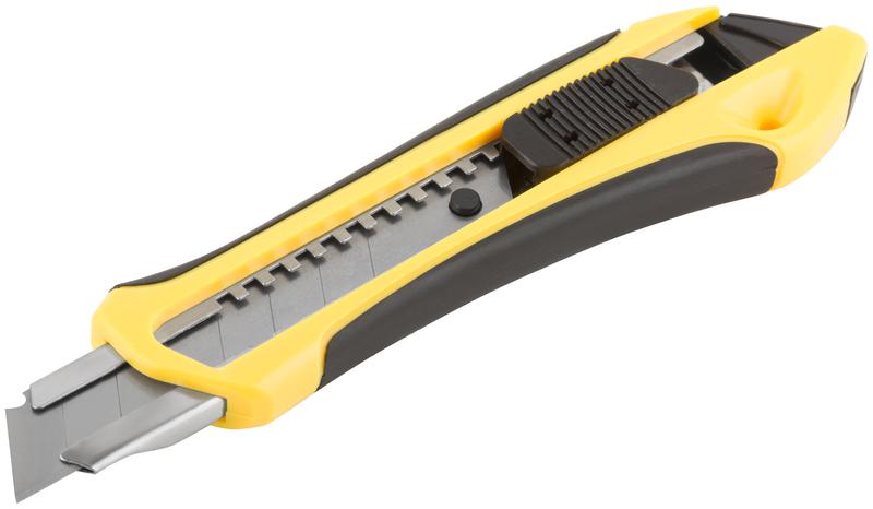 Нож технический 18мм усиленный прорезиненный 2-х сторонняя автофиксация FIT 10245