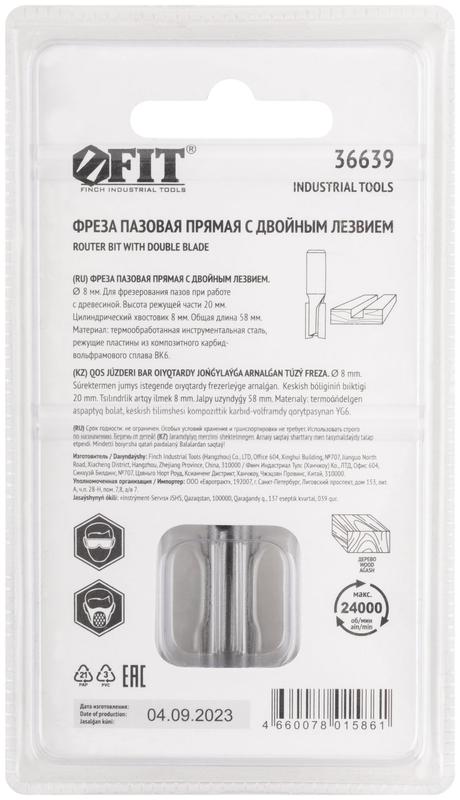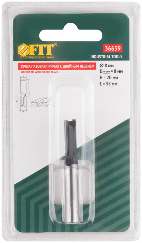 Фреза пазовая прямая с двойн. лезвием DхHхL=8х20х58мм FIT 36639