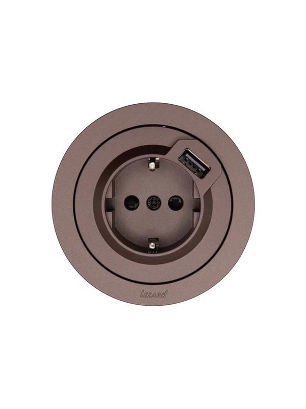 Розетка 1-м СП OSEN с заземл. + USB разъем механизм шоколад LEZARD 743-7388-181