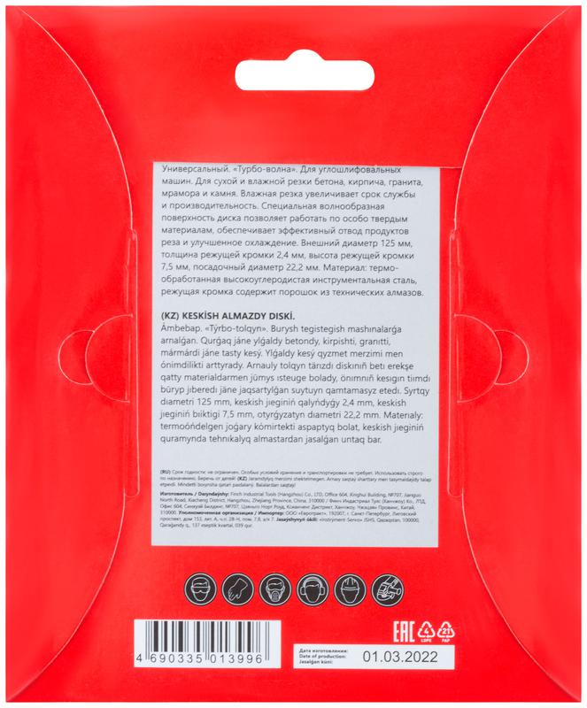 Диск отрезной алмазный Турбо-волна 125х2.4х7.5х22.2мм сухая и влажная резка КУРС 37272