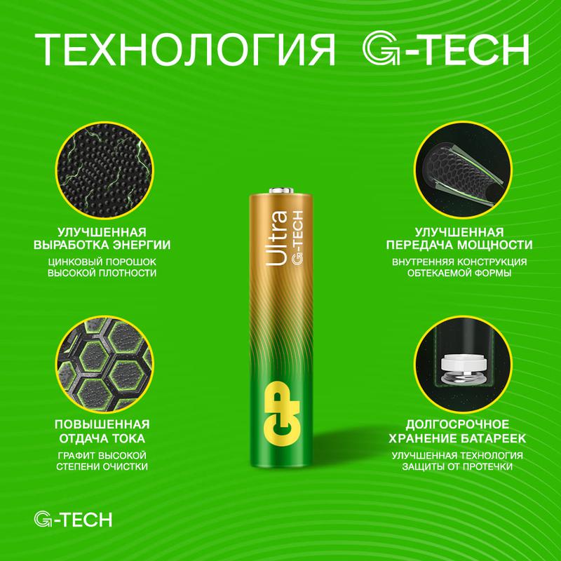Элемент питания алкалиновый AAA/LR03 1.5В Ultra Alkaline G-Tech (блист.2шт) GP 1232