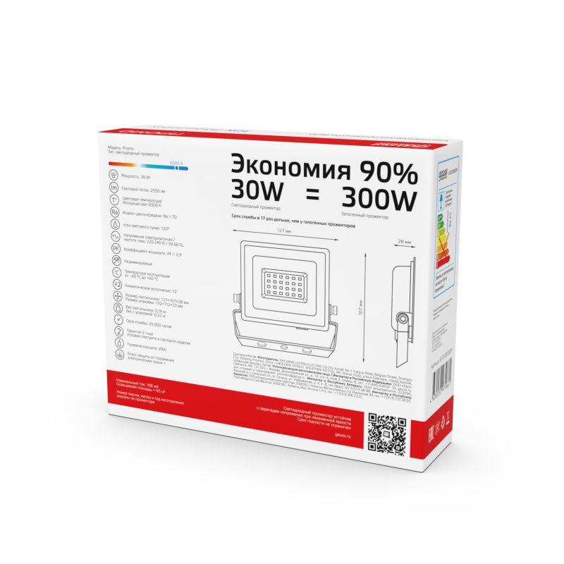 Прожектор светодиодный Elementary 30Вт IP65 6500К 2550лм PROMO G3 черн. GAUSS 613100330P