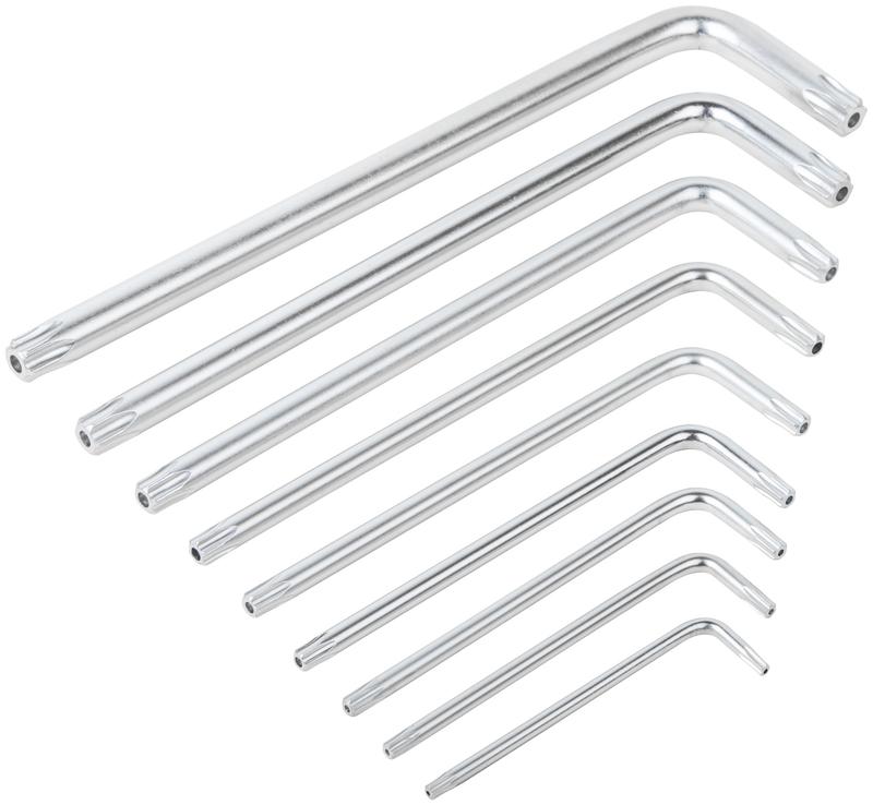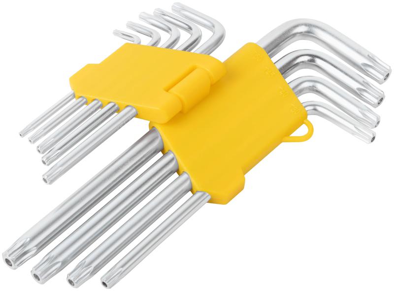 Ключ "звездочки" Т10-Т50 длинный с отверст. в пластик. держателе CrV сталь (уп.9шт) FIT 64026