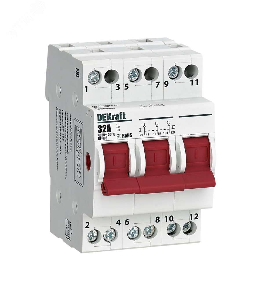 Выключатель-разъединитель трехпозиционный 3P 32A ВР-103 | код 17215DEK | Dekraft