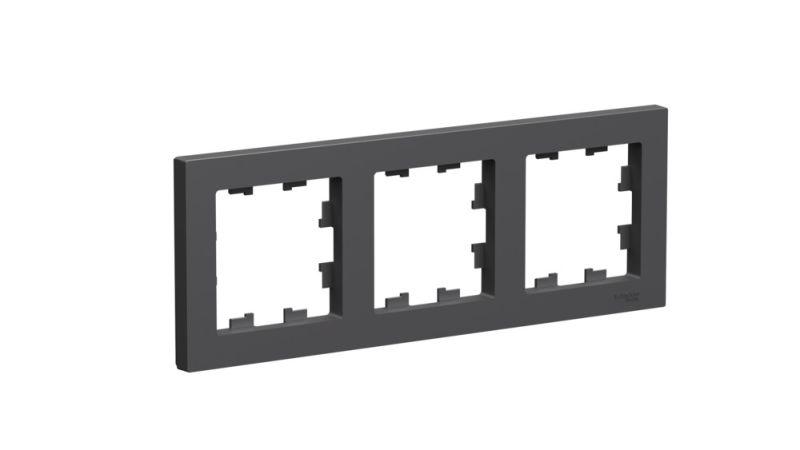 Рамка Systeme Electric (ранее Schneider Electric) серии AtlasDesign в цвете БАЗАЛЬТ трёхместная.