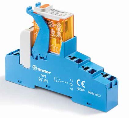 Интерфейсный модуль (сборка 46.61.9.024.0040 + 99.02.9.024.99 + 97.P1SPA), электромеханическое реле, 1CO 16A, контакты AgNi, питание 24В DC, категория защиты IP20, безвинтовые клеммы Push-in, пластиковая клипса, LED + диод, кнопка тест + мех.индикатор Код