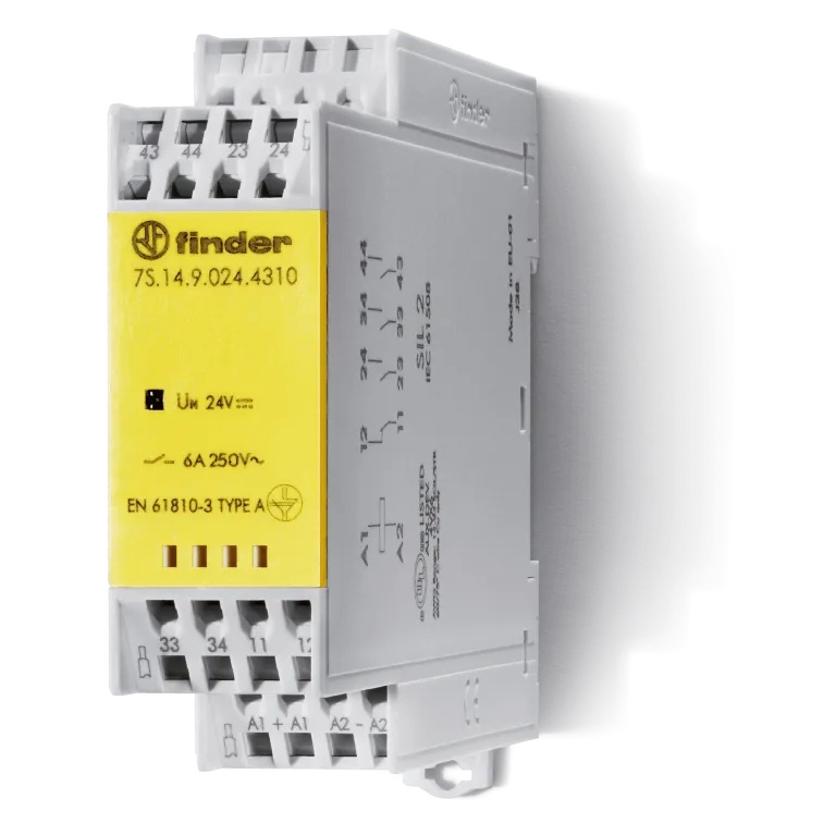 Модульное электромеханическое реле безопасности (реле с принудительным управлением контактами) SIL2, 3NO+1NC 6A, контакты AgSnO2, катушка 110В DC, безвинтовые клеммы, ширина 22.5мм, степень защиты IP20 | код 7S1491104310 | FINDER