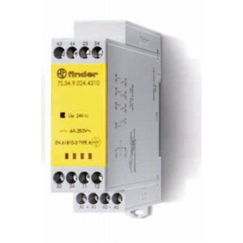 Модульное электромеханическое реле безопасности (реле с принудительным управлением контактами) SIL2, 2NO+2NC 6A, контакты AgSnO2, катушка 230В AC, винтовые клеммы, ширина 22.5мм, степень защиты IP20 | код 7S3482304220 | FINDER