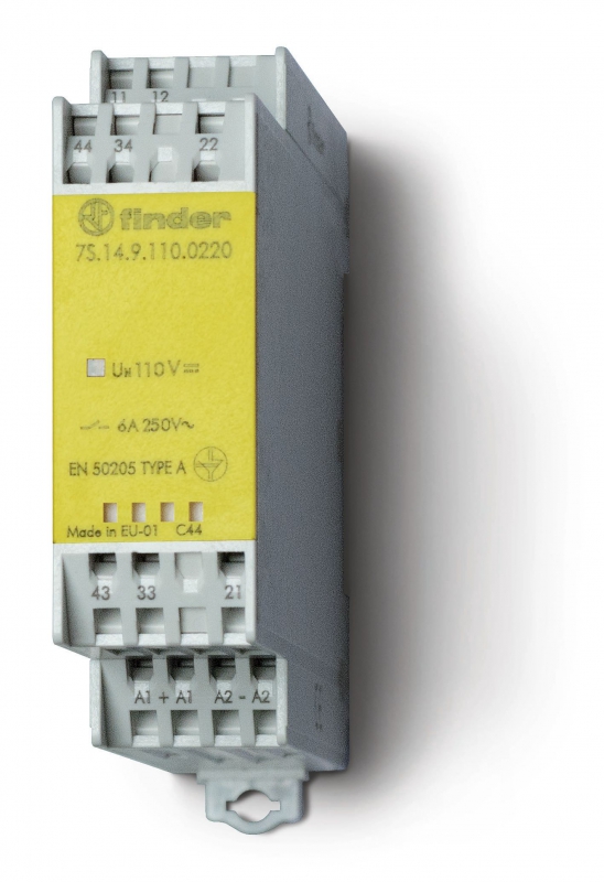 Модульное электромеханическое реле безопасности (реле с принудительным управлением контактами) SIL2, 2NO+2NC 6A, контакты AgNi, катушка 12В DC, ширина 22.5мм, степень защиты IP20 | код 7S1490120220 | FINDER