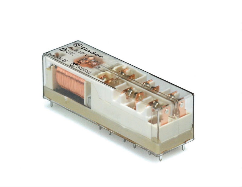 Электромеханическое реле безопасности (реле с принудительным управлением контактами), монтаж на печатную плату, 5NO + 1NC, контакты AgSnO2+Au, катушка 110В DC, влагоащита RTIII | код 501691105510 | FINDER