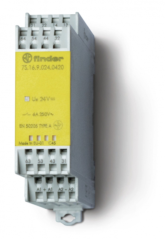 Модульное электромеханическое реле безопасности (реле с принудительным управлением контактами) SIL2, 4NO+2NC 6A, контакты AgNi, катушка 12В DC, ширина 22.5мм, степень защиты IP20 | код 7S1690120420PAS | FINDER