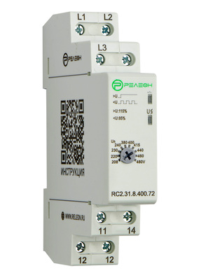 RC2.31.8.400.72 Реле контроля фаз U>, <U, обрыв фаз 1 перекидной контакт 8А (~ 400В AC) | код RC231840072 | РЕЛЕОН