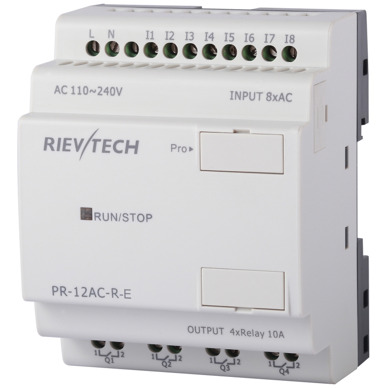 Программируемый логический контроллер PR-12AC-R-E, 110_240VAC, 8DI, 4RO, RTC, RS232, нерасширяемый | код PR-12AC-R-E | Rievtech