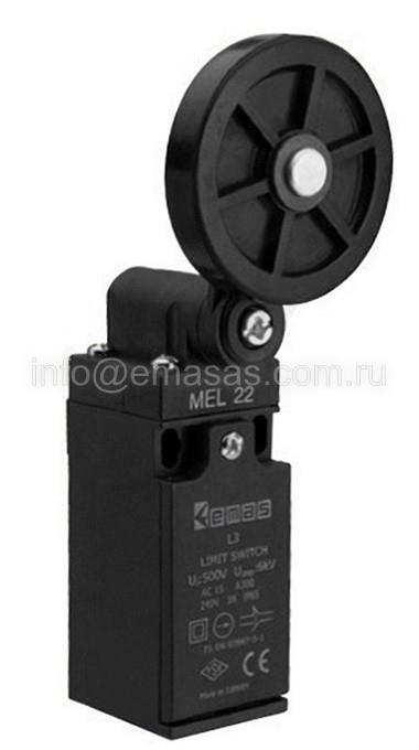 Выключатель концевой быстрого переключения угловой 2-х направленный с пластмассовой консолью и резиновым роликом Ф50мм (1НО+1НЗ), L3K13MEL121 | код L3K13MEL121 | EMAS