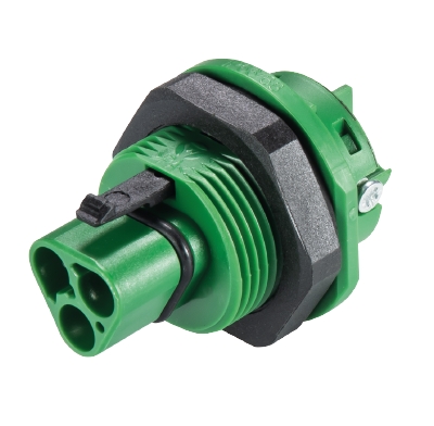 Вилочный разъем в панель, М25, IP68(69k), 3 полюса, винтовая фиксация провода, номинальные характеристики: 250/400V, 20A, цвет контактной вставки: зеленый, цвет корпуса: черный, серия RST Classic | код 96.032.5055.7 | Wieland