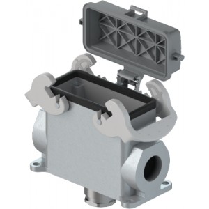 Закрытое основание разъема REVOS, Size 16H, с уплотнителем, без защелок, с защитной крышкой, 1 кабельный ввод IP54 M25x1,5, с нижним расположением, материал корпуса: алюминиевый сплав | код 73.343.4035.0 | Wieland