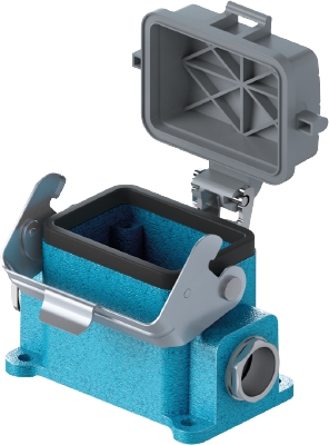 Закрытое основание взрывозащищенного разъема REVOS Ex, Size 6, с защитной крышкой, 2 кабельных ввода IP54 M20x1,5, с одной металлической защелкой, с уплотнителем, материал корпуса: цинковый сплав | код 70.340.0636.0 | Wieland