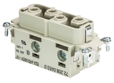Розеточная контактная вставка REVOS POWER, Size 16H, винтовая фиксация, 4 полюса + РЕ, 690 V, 82 A, материал контактов: медный сплав, тип покрытия контактов: серебро | код 72.208.0453.0 | Wieland