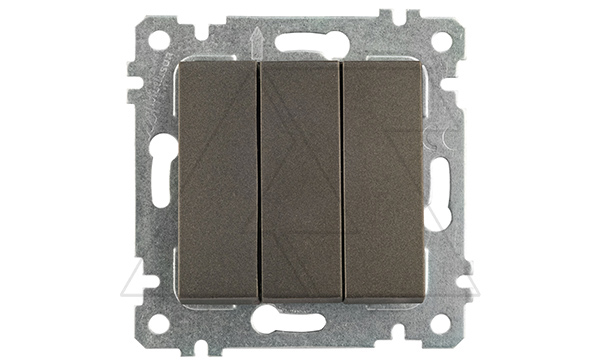 Rita - Выключатель трехклавишный, пруж. зажимы, дымчатый | код 2200-409-0195 | Mutlusan