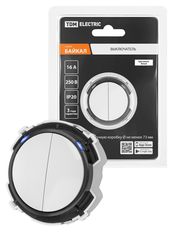 Выключатель 2-кл. 16А 250В проходной кнопочный механизм белый, Байкал TDM | код SQ1819-0025 | TDM